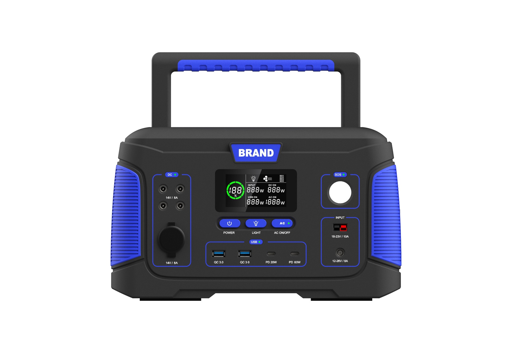 65W POWER. With two super flash light. Two TYPE-C and six USB-A ports.