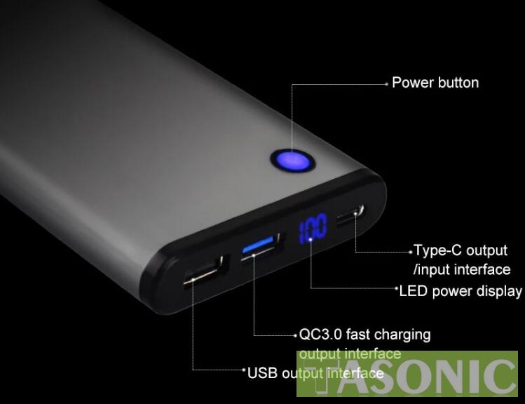 | Output | USB 5V/2.1,Type-C 5V/2A,9V2A,,QC 3.0USB: 3.6-6.5V/3A,6.5-9V/2A,9-12V/1.5A, |