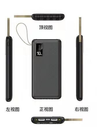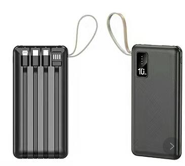 * Attached USB-C cable, lightning cable, micro cable, USB-B cable. * build-in dual flash light (10W) * LCD power level indicator * 10k mah capacity * with strong hander