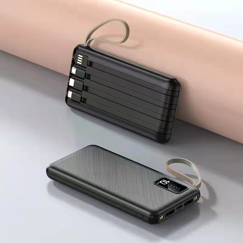 Dual Flash-Lights, attached four cables, 10k LCD POWER BANK - Slim
